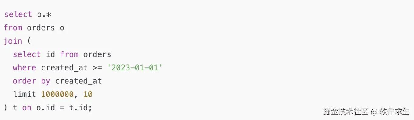 这样子查询部分只走索引,返回很快;主查询只查 10 条数据,避免了大范围扫描。