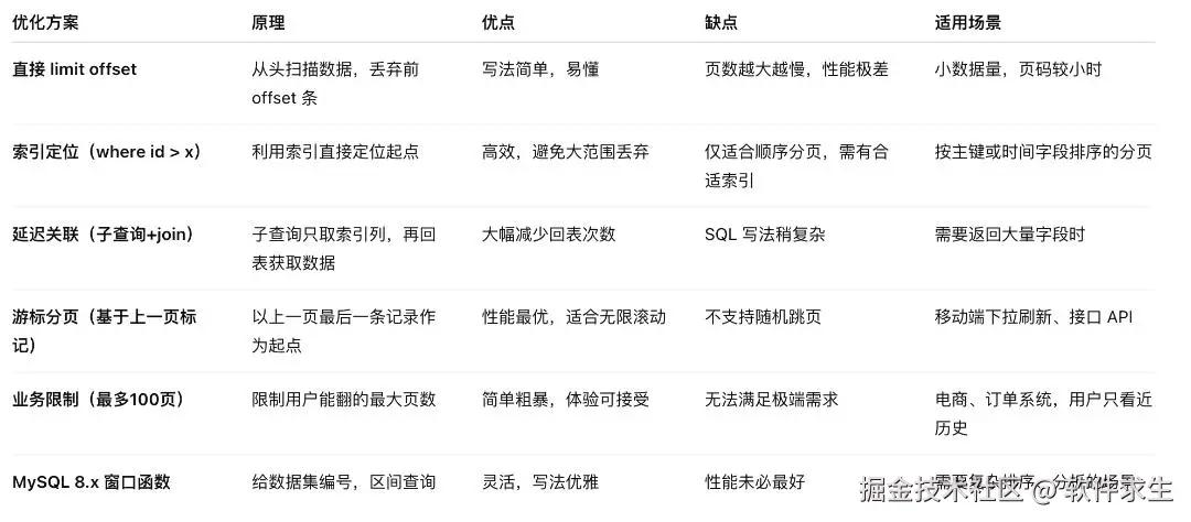 - InnoDB 隐式主键优化:MySQL 8.x 对主键分页性能优化得更好,面试时可以顺带提一句“升级版本能提升性能”。