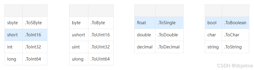数值型:int a=Convert.ToInt32(1.1245f); 精度强于括号强转,会四舍五入