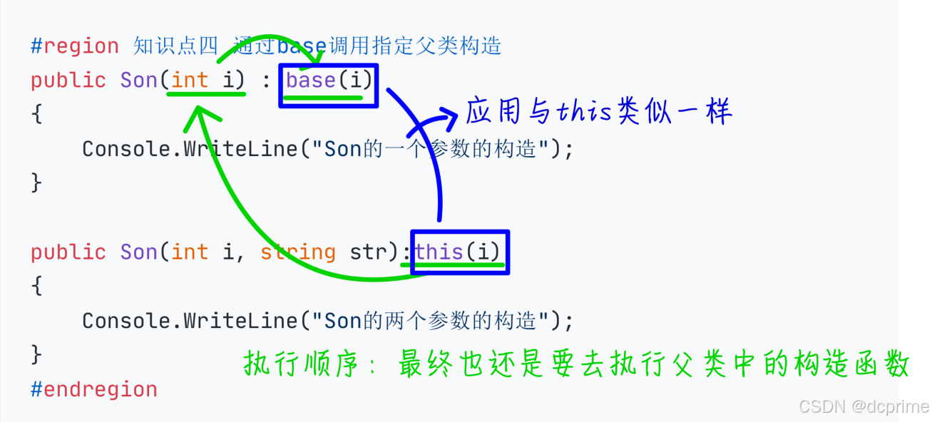 public Son(int i) : base(i)//父类没有了无参构造,则指定一个父类的构造函数