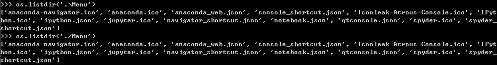 2. 返回指定的文件夹包含的文件或文件夹的名字的列表,这个列表以字母顺序。