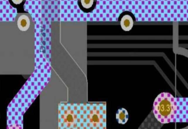 AD的PCB文件中有些走线上会有很多小方格,放大了字后看是2种颜色混合到一起了。