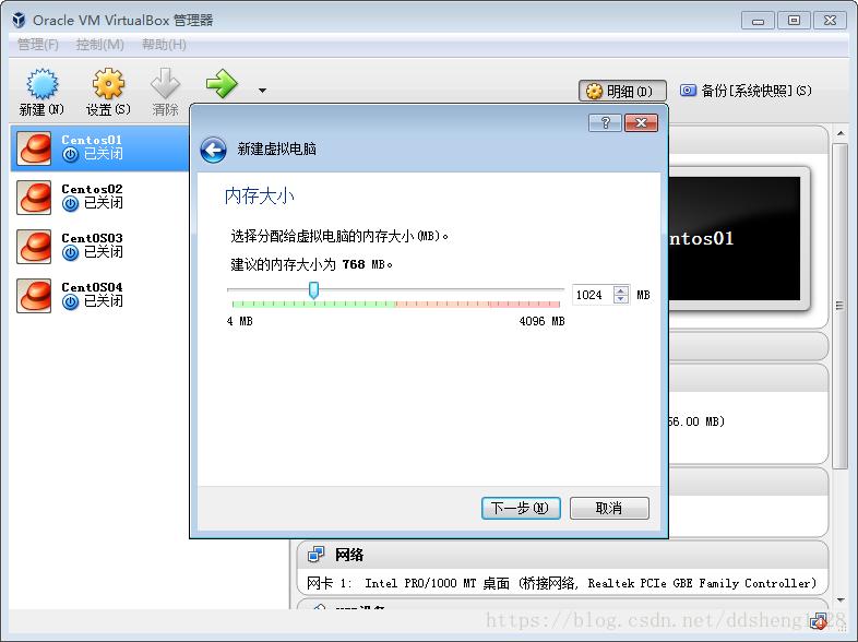 点下一步,内存分配,建议不要太小,推荐来个1G,如下图