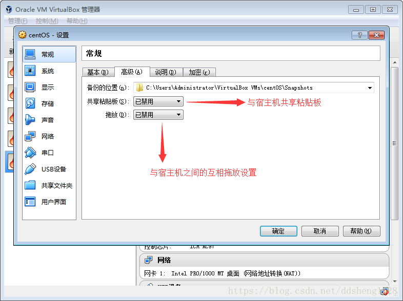 常规设置中,基本设置不用改变,就用我们之前的设置就行,高级中可以进行一些设置,我这里建议只修改一下备份的位置,不要放在C盘,共享粘贴板和拖放保持默认的禁用就行了;