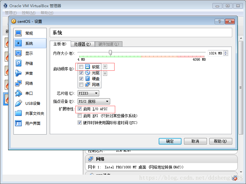 系统设置中,只需要对主板选项进行下设置,将软驱前的勾去掉,勾上 启用 I/O APIC,如下图