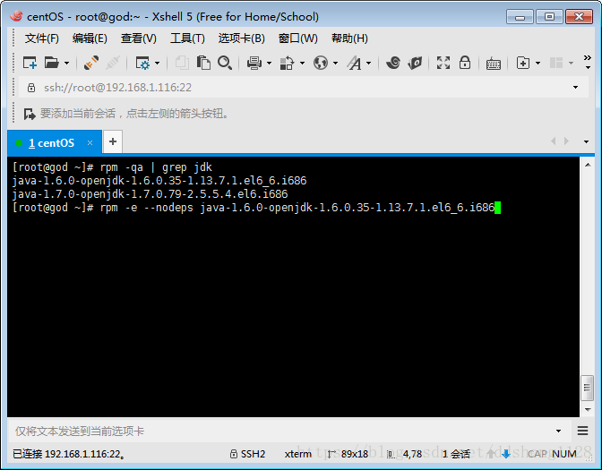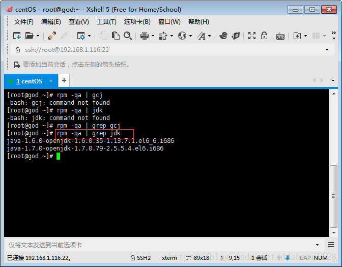 由于之前系统安装都是默认的,没有进行自定义,那么系统是自动安装了jdk的,我们需要卸载它,然后安装我们自己的,先查看默认安装的jdk版本,如下图