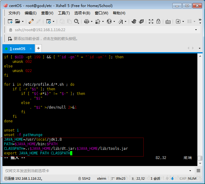 输入java -version,竟然提示java命令没找到! 什么鬼嘛? 其实还没配置环境,就跟windows下配置环境的道理是一样的,那么就配置罗,编辑etc目录下的profile文件,在文件末尾追加我们的配置(至于linux vim操作,不知道的也需要自行补脑了),如下图