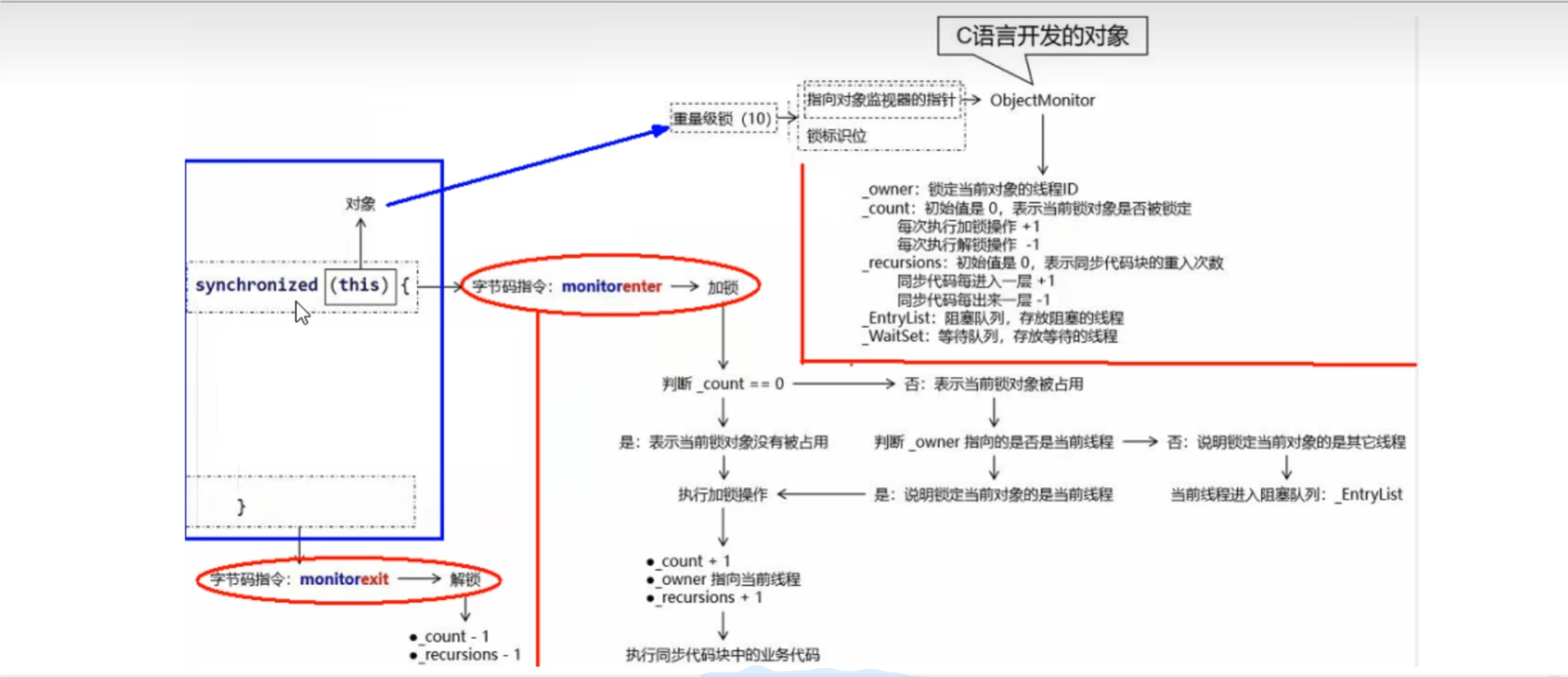 Java 中的同步机制基于监视器锁的概念。每个对象都有一个内部监视器,这个监视器可以用来控制对对象状态的访问。当一个线程尝试进入一个同步的代码块或方法时,它必须首先获取该对象的监视器锁。如果已经有其他线程持有了这个锁,那么当前线程将会被阻塞,直到锁被释放。Synchronized锁重入也是这个监视器里的一个属性,记录锁的持有者和进入次数。