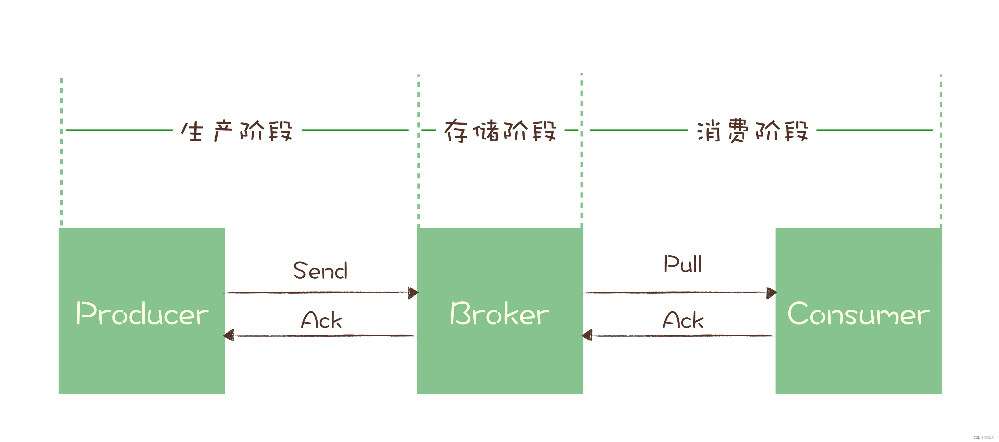 消息队列:如何确保消息不会丢失 使用消息队列最常遇到的问题,也是最头痛的问题就是丢消息了。对于大部分业务系统来说,丢消息意味着数据丢失,是完全无法接受的。其实,现在主流的消息队列产品都提供了非常完善的消息可靠性保证机制,完全可以做到在消息传递过程中,即使发生网络中断或者硬件故障,也能确保消息的可靠传递,不丢消息。绝大部分丢消息的原因都是由于开发者不熟悉消息队列,没有正确使用和配置消息队列导致的。虽然不同的消息队列提供的 API 不一样,相关的配置项也不同,但是在保证消息可靠传递这块儿,它们的实现原理是一样的。...
