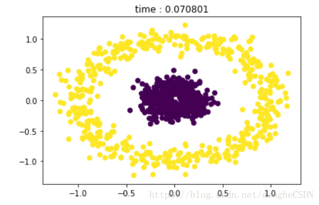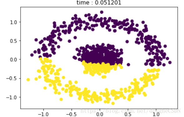 来来来,你再看看 K-means 的聚类效果,对于非凸的数据聚类效果就是这个样子。。。