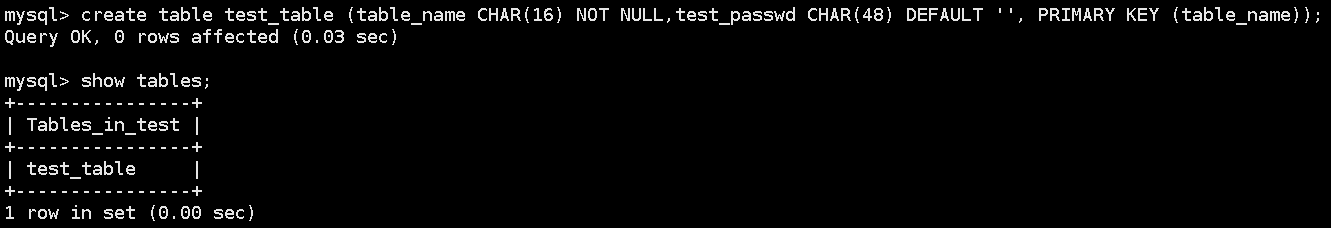 8,创建一个新的表格test_table并查看。