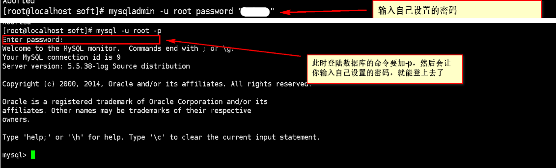 1,未设置密码,开始第一次可以使用mysqladmin -u root password "密码"的形式设置密码,之后登陆就需要用设置的密码登陆了。