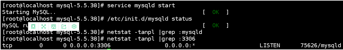 12, 开启mysql服务,并查看是否启动成功。