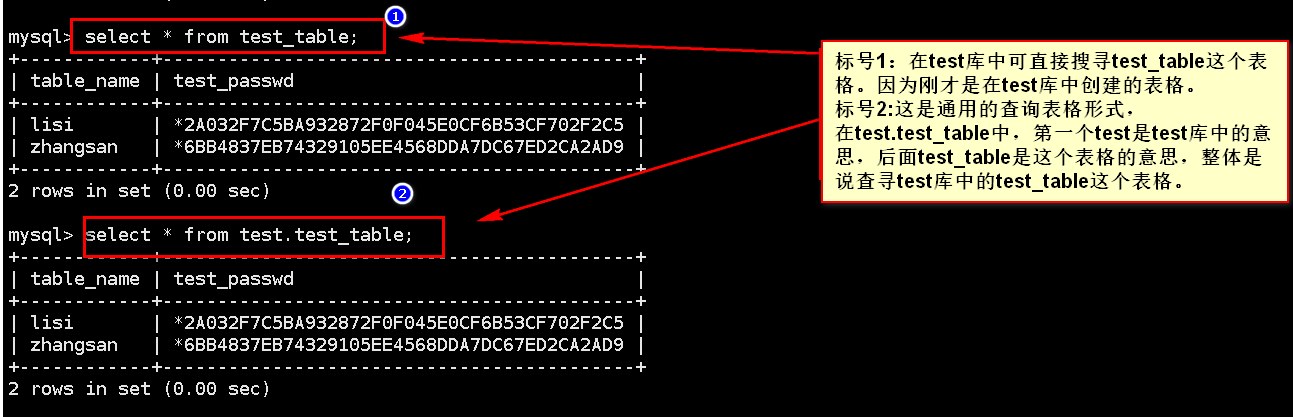 11,在test_table表中插入两条数据,并查看。