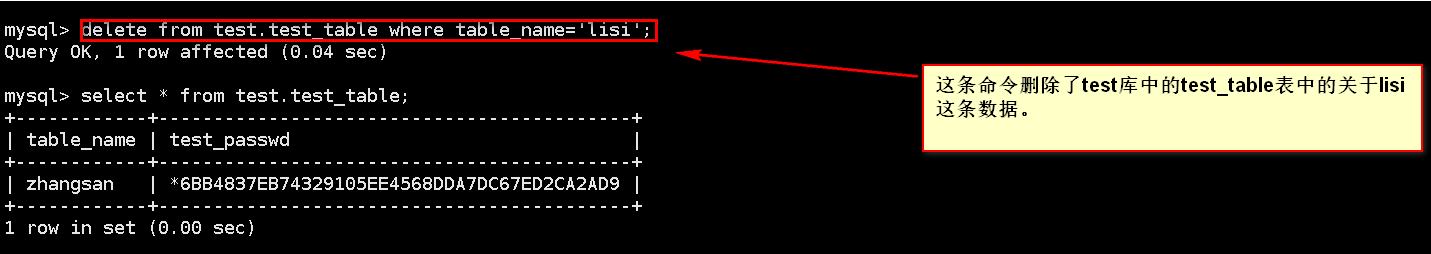 16,删除test库中的test_table表中的table_name为lisi的数据记录。