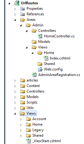 在vs2010的mvc项目中点右键创建Area,比如为Admin。创建完后,它就又一套自己的结构了,如下: