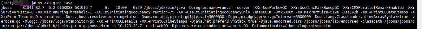2.找出进程,杀掉占用最大的那个进程,对于我们的web环境,基本无疑问是jboss进程。。。
