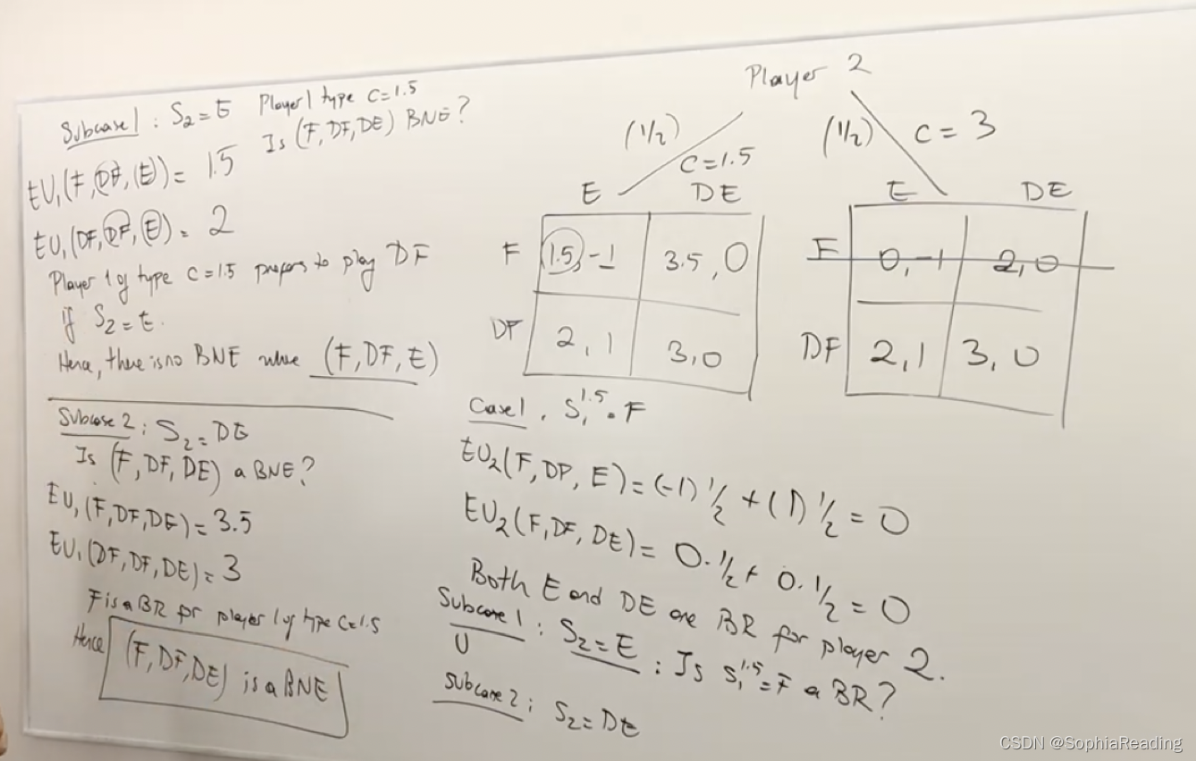 是Player 2的Bese Response。故,((DF, DF), E)是一個Bayesian Nash Equilibrium。