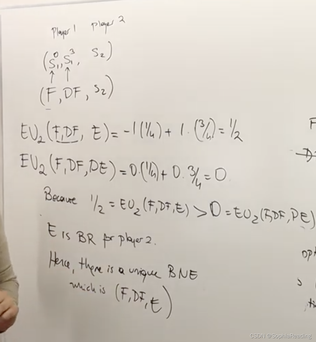 F的收益小於DF。所以,如果Player 2的strategy是E,Player 1的Best Response不是F。