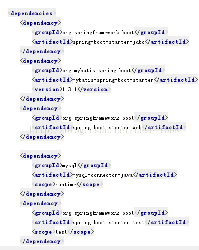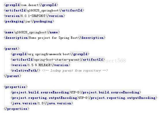 <?xml version="1.0" encoding="UTF-8"?> <project xmlns="http://maven.apache.org/POM/4.0.0" xmlns:xsi="http://www.w3.org/2001/XMLSchema-instance" xsi:schemaLocation="http://maven.apache.org/POM/4.0.0 http://maven.apache.org/xsd/maven-4.0.0.xsd"> <modelVersion>4.0.0</modelVersion> <groupId>com.desert</groupId> <artifactId>g160828_springboot</artifactId> <version>0.0.1-SNAPSHOT</version> <packaging>jar</packaging> <name>g160828_springboot</name> <description>Demo project for Spring Boot</description> <parent> <groupId>org.springframework.boot</groupId> <artifactId>spring-boot-starter-parent</artifactId> <version>1.5.9.RELEASE</version> <relativePath/> <!-- lookup parent from repository --> </parent> <properties> <project.build.sourceEncoding>UTF-8</project.build.sourceEncoding> <project.reporting.outputEncoding>UTF-8</project.reporting.outputEncoding> <java.version>1.8</java.version> </properties> <dependencies> <dependency> <groupId>org.springframework.boot</groupId> <artifactId>spring-boot-starter-jdbc</artifactId> </dependency> <dependency> <groupId>org.mybatis.spring.boot</groupId> <artifactId>mybatis-spring-boot-starter</artifactId> <version>1.3.1</version> </dependency> <dependency> <groupId>org.springframework.boot</groupId> <artifactId>spring-boot-starter-web</artifactId> </dependency> <dependency> <groupId>mysql</groupId> <artifactId>mysql-connector-java</artifactId> <scope>runtime</scope> </dependency> <dependency> <groupId>org.springframework.boot</groupId> <artifactId>spring-boot-starter-test</artifactId> <scope>test</scope> </dependency> <!-- servlet 依赖. --> <dependency> <groupId>javax.servlet</groupId> <artifactId>javax.servlet-api</artifactId> <scope>provided</scope> </dependency> <dependency> <groupId>javax.servlet</groupId> <artifactId>jstl</artifactId> </dependency> <!--SpringBoot默认不支持JSP,需要在项目中添加相关的依赖--> <dependency> <groupId>org.apache.tomcat.embed</groupId> <artifactId>tomcat-embed-jasper</artifactId> </dependency> <dependency> <groupId>org.eclipse.jdt.core.compiler</groupId> <artifactId>ecj</artifactId> <version>4.6.1</version> <scope>provided</scope> </dependency> <!-- json数据 使springMVC可以返回json值 ,视情况添加--> <dependency> <groupId>com.alibaba</groupId> <artifactId>fastjson</artifactId> <version>1.2.30</version> </dependency> </dependencies> <build>