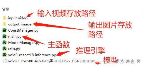 这里我们输入的是视频,使用OpenCV读取的视频,得到视频帧,对每一视频帧进行逐帧处理,注意OpenCV得到的帧是BGR格式,需要转为RGB格式,而且视频帧大小不一定符合模型输入要求的416*416, 所以还要做resize。我在模型转化时,开启AIPP,完成BGR到RGB的色域转换,而resize使用OpenCV来完成。之后送入模型,得到推理结果,对推理结果解析,最终将结果写图片保存。