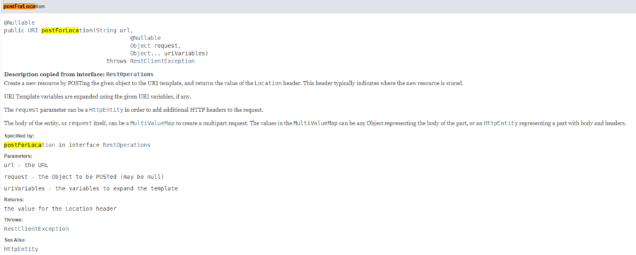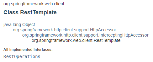 1.https://docs.spring.io/spring-framework/docs/current/javadoc-api/org/springframework/web/client/RestTemplate.html