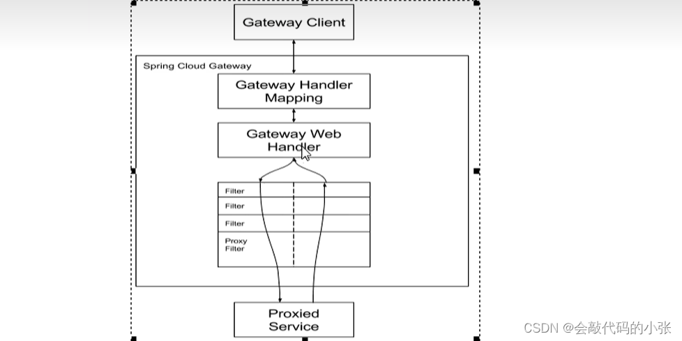- 客户端向Spring Cloud Gateway发出请求。然后在Gateway Handler Mapping中找到与请求相匹配的路由,将其发送到GatewayWeb HandlerHandler再通过指定的过滤器链来将请求发送到我们实际的服务执行业务逻辑,然后返回。