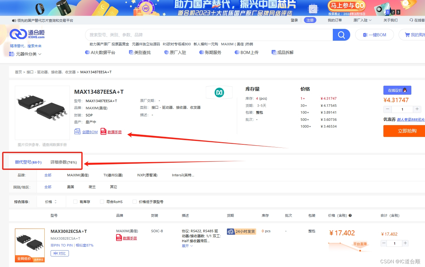 通过选择道合顺电子网的芯片查询工具,您将获得一站式的电子元件信息服务,助力您在电子设计、维护和研发过程中更加高效地完成芯片查询、分析与调试工作。