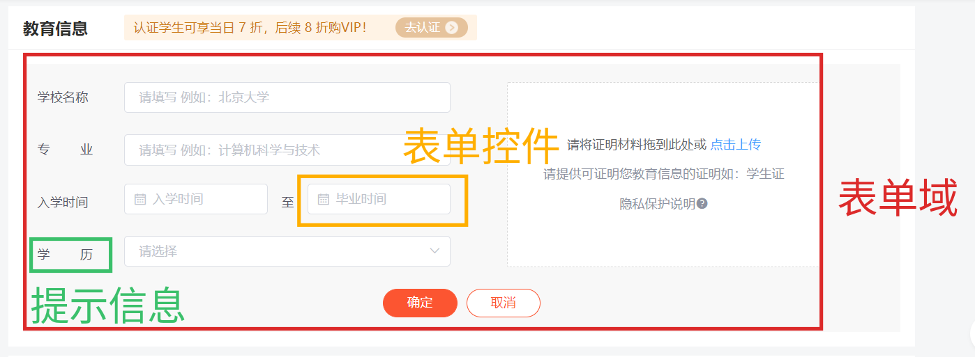 HTML表单基础知识 这次我们主要介绍关于 表单 的基础知识,下次制作一个登陆页面。首先,表单由三个部分组成:表单域、表单控件(表单元素)、提示信息。如图:目录表单域表单控件(表单元素)input 输入表单元素select 下拉表单元素textarea 文本域元素表单域表单域是一个包含表单元素的区域,相当于提供一个空间,用到的标签是 < form > 标签。< form > 用于定义表单域,以实现用户信息的收集和传递,会把它范围内的表单元素信息提交给服务器。