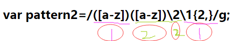 如果pattern1变为/([a-z])\1/g;那么其中的\1代表的就是([a-z])这个结果: