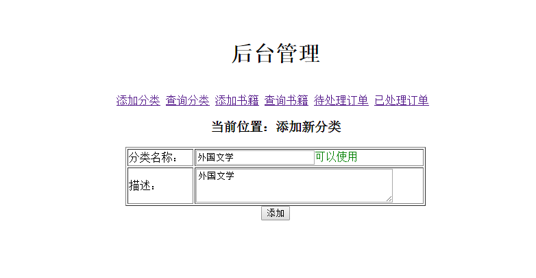 (1)后台功能:管理员登录后台可以新增图书分类,图书信息。