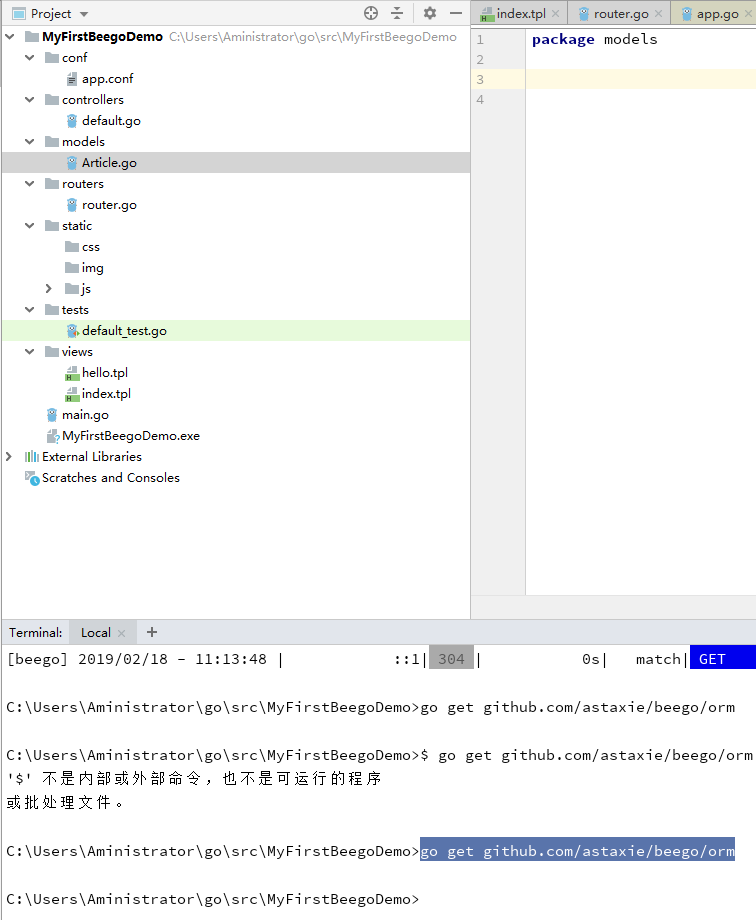 go get github.com/astaxie/beego/orm