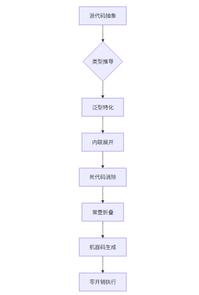 零成本抽象的本质在于:使用抽象不应比手写底层代码慢。编译器通过内联、特化、常量折叠等优化技术,将高层抽象在编译期展开为高效的机器码。这让开发者既能享受抽象带来的代码简洁性,又不牺牲性能。