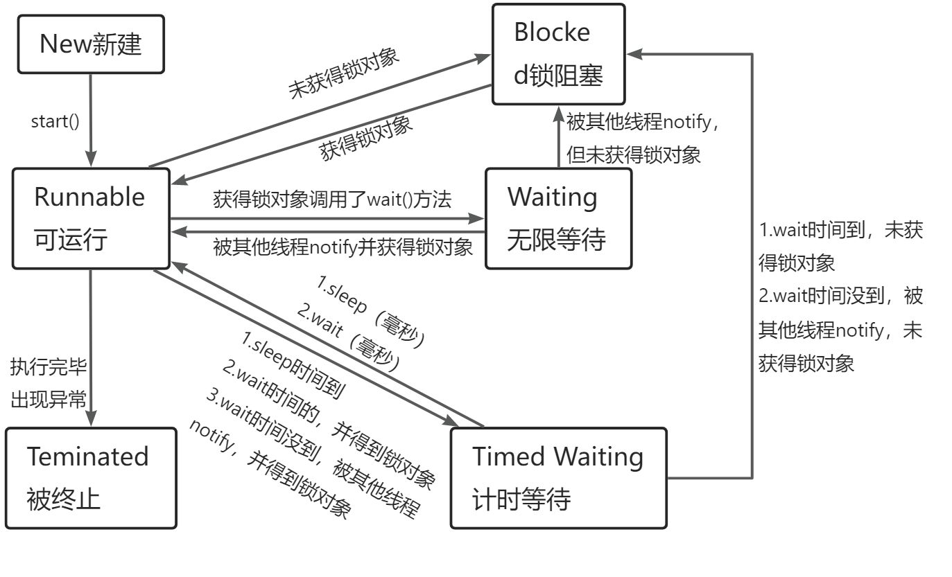 线程在执行的时候未竞争到锁对象,则该线程进入Blocked状态 |