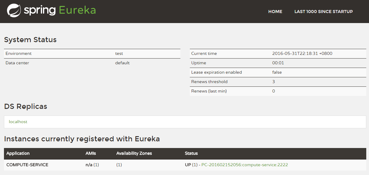 spring.application.name=compute-service server.port=2222 eureka.client.serviceUrl.defaultZone=http://localhost:1111/eureka/