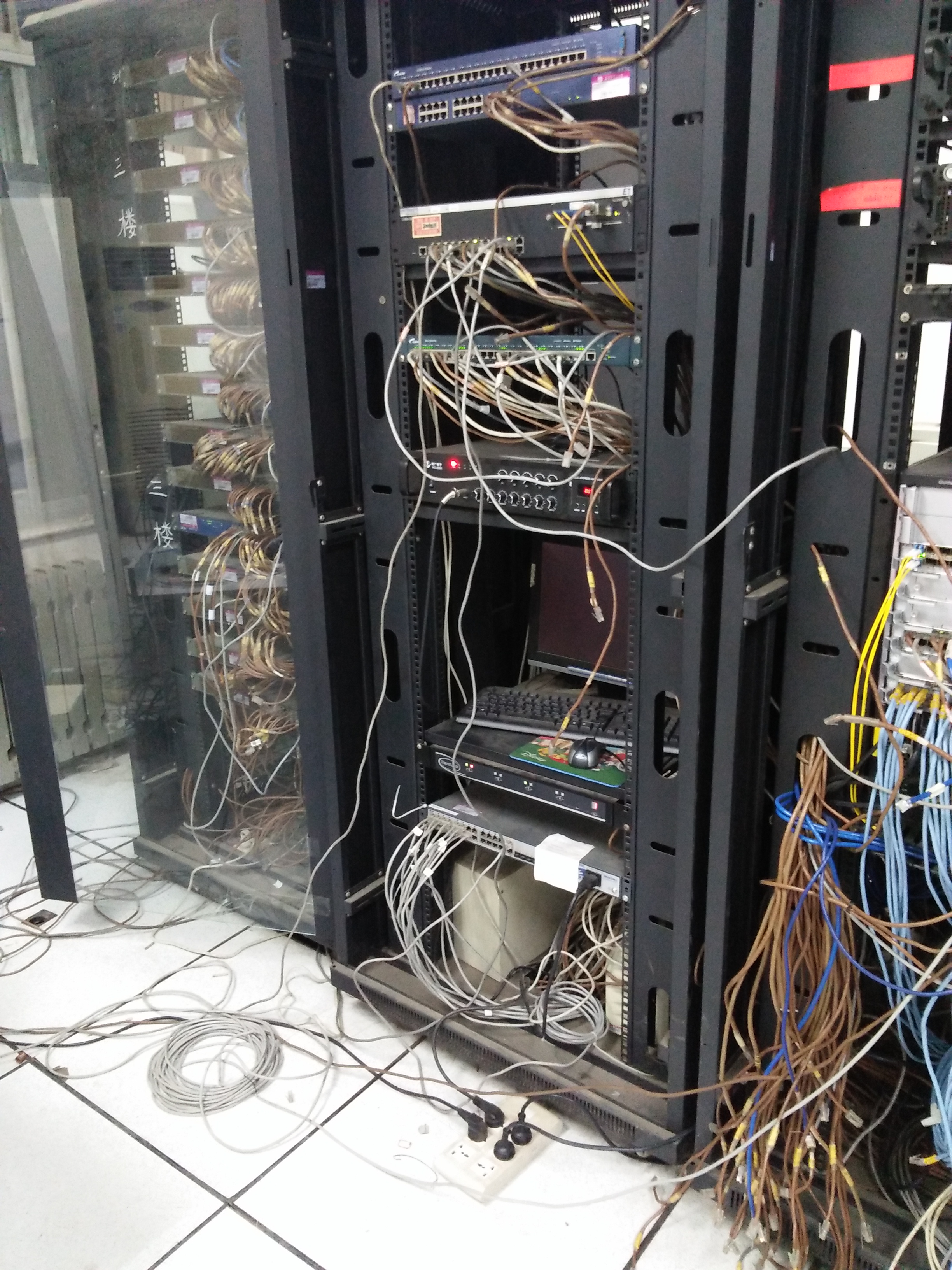 通过今天的实习,我知道了整个实验楼的主线都需要经过各个楼层的主控室,主控室里面有管理网络的核心硬件设备,主线进入我们房间的机柜之后,其他网线插到交换机上之后,各个桌子上的计算机才会联网。