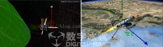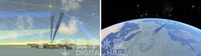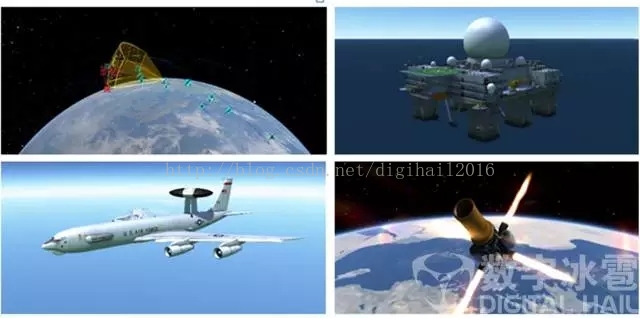 三维可视化效果是通过基于OpenGL图形API自主研发的三维实时渲染引擎实现,仿真装备对象全部由数据驱动。利用三维视图结合虚拟现实技术进行更加逼真的态势显示,真实仿真宇宙和地球、自然环境、作战装备、战场信息等可视化效果。以最佳方式实现了战场环境可视化和战场态势可视化,达到科幻电影级的实时可视化效果。