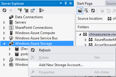 - Open Visual Studio 2012, Server Explorer. (Ensure you have installed patches for Azure, like Azure SDK)