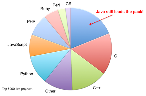 在图3中检查了这些活动项目中使用的主要语言之后,我们看到Java继续领先。 也就是说,我们还发现较新的项目正在大量使用Python,PHP和JavaScript。