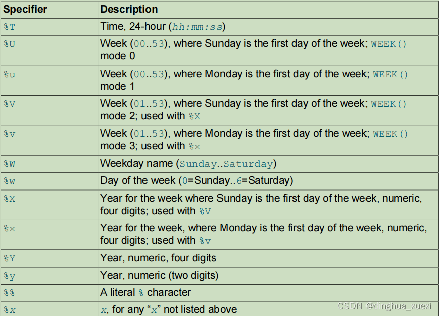 4.1 MYSQL日期时间格式表