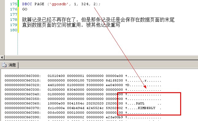 如果你在做回滚操作之前查看过数据页的内容,你会看到聚集索引表里的记录标记为鬼影记录