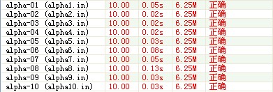 输出文件alpha.out包含一行。在这一行中,应当包含唯一的那组解。解是这样表示的:输出N个数字,分别表示A,B,C……所代表的数字,相邻的两个数字用一个空格隔开,不能有多余的空格。