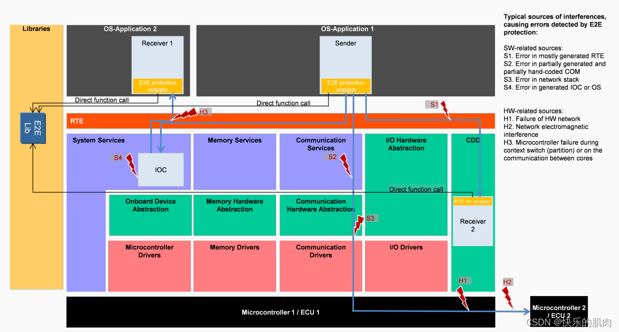 其实除了ECU之间的E2E保护,在不同OS-Application之间的数据通信也可使用E2E保护,如下图: