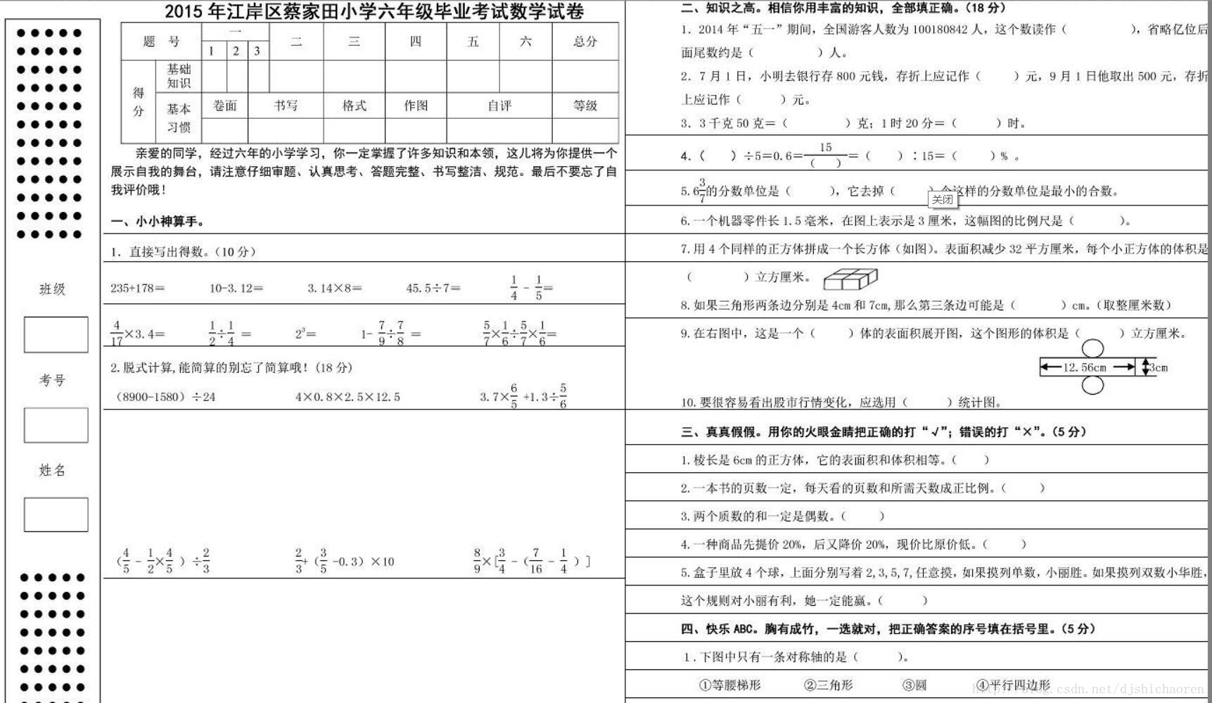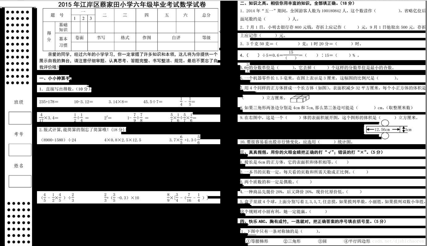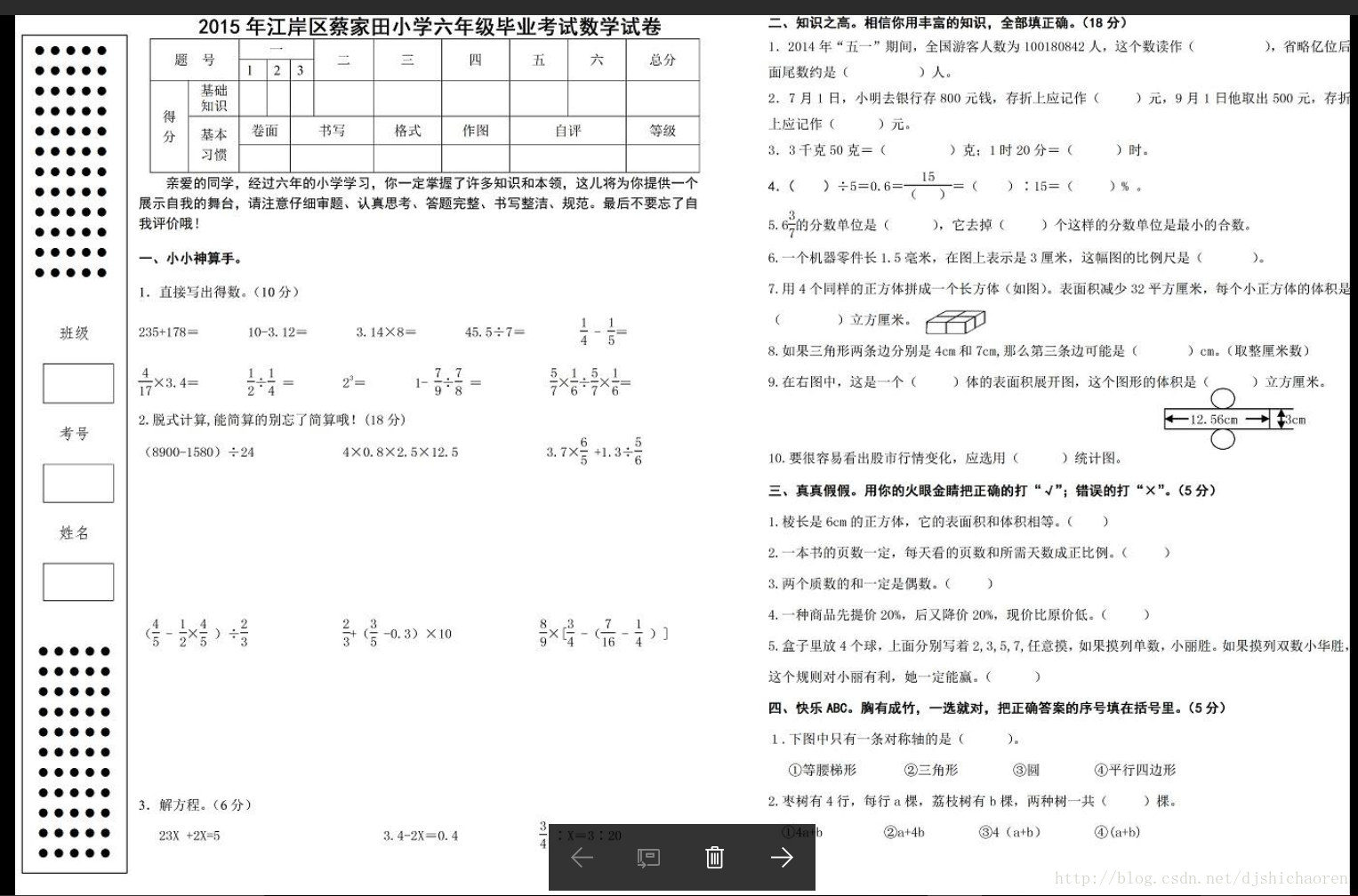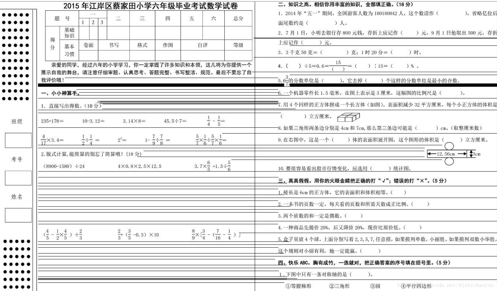 试卷的本来面目
