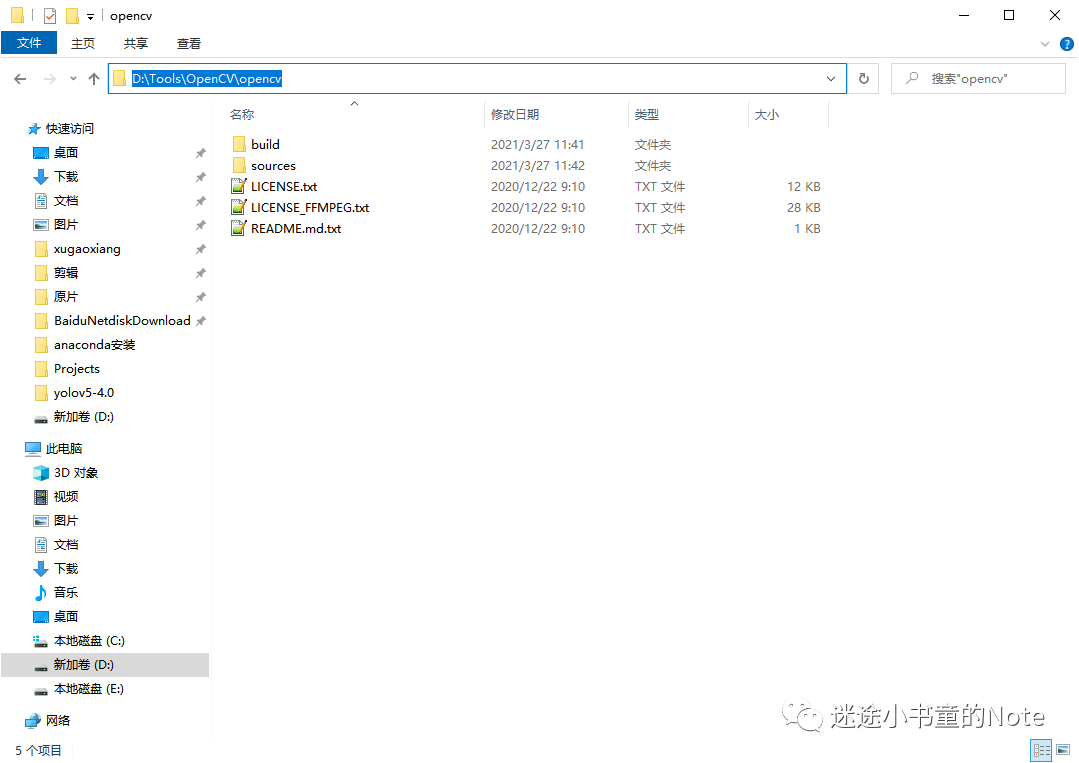 下载后是一个exe文件,打开傻瓜式一步步安装就好了,记录好安装路径(我这里是D:\Tools\OpenCV\opencv),然后增加一个环境变量OpenCV_DIR,指向opencv安装后的build目录,如下