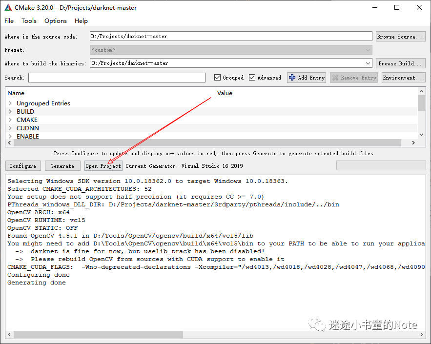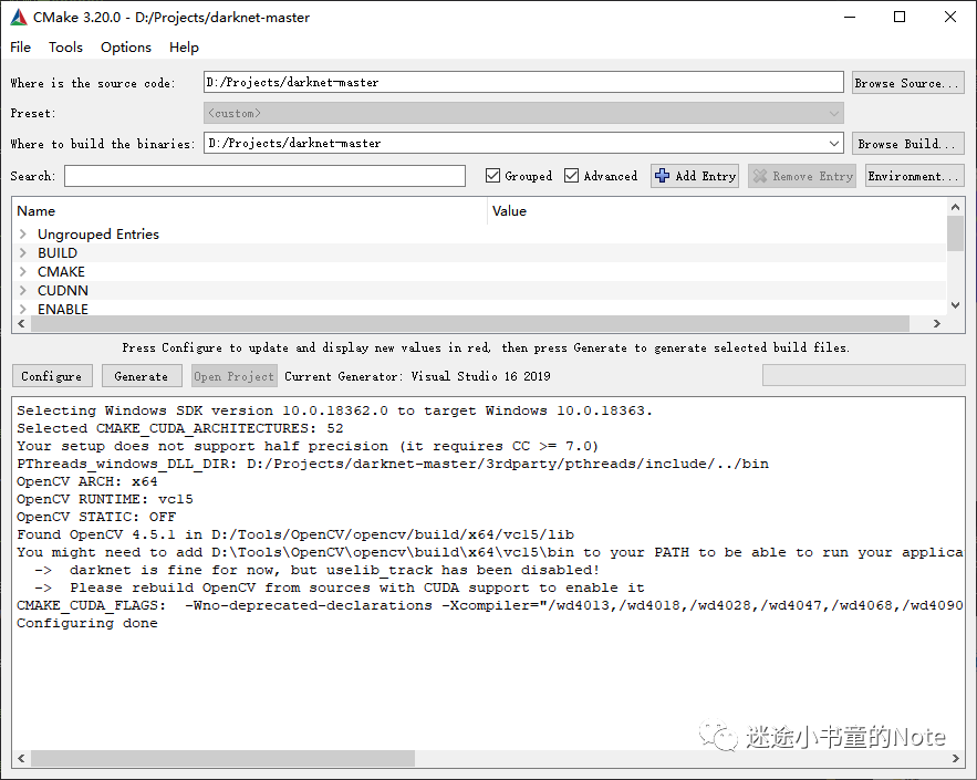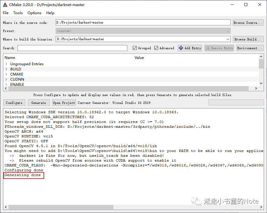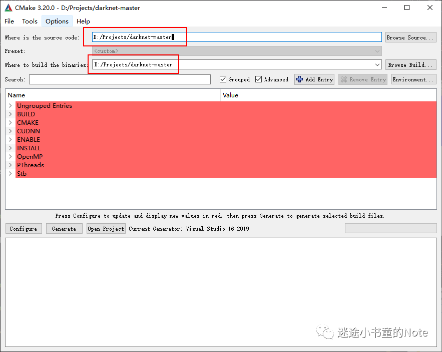 源码目录和编译目标目录都指向darknet的源码目录,这里使用AlexeyAB的版本 https://github.com/AlexeyAB/darknet