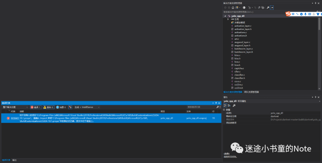 错误 MSB4019 找不到导入的项目“C:\Program Files (x86)\Microsoft Visual Studio\2019\Professional\MSBuild\Microsoft\VC\v160\BuildCustomizations\CUDA 10.1.props”。请确认 Import 声明“C:\Program Files (x86)\Microsoft Visual Studio\2019\Professional\MSBuild\Microsoft\VC\v160\\BuildCustomizations\CUDA 10.1.props”中的表达式正确,且文件位于磁盘上。yolo_cpp_dll D:\Projects\darknet-master\build\darknet\yolo_cpp_dll.vcxproj 55