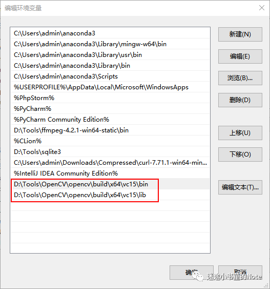 接下来分别将opencv下的build\x64\vc15\bin和build\x64\vc15\lib目录,追加到PATH环境变量中,如下