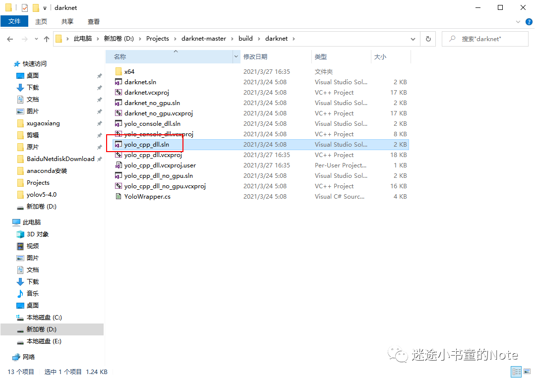如果要编译动态链接库dll的话,进入到darknet源码下的build\darknet,用visual studio 2019打开yolo_cpp_dll.sln