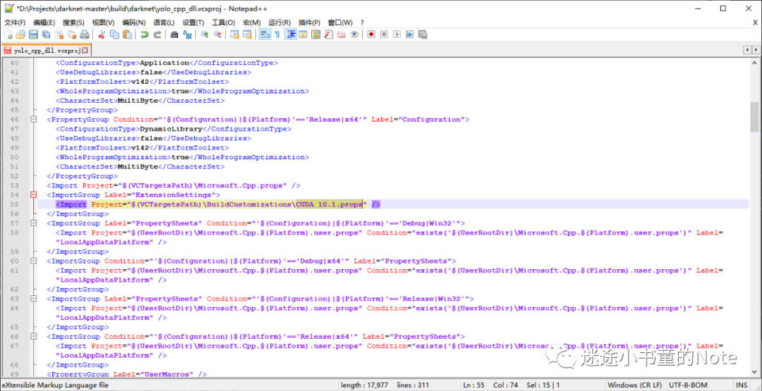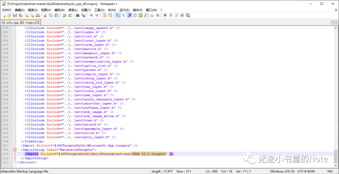 编辑文件yolo_cpp_dll.vcxproj,将里面的cuda 10.1版本改成你系统中的版本,我这里是cuda 11.1,包括.props和.targets